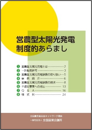 営農型太陽光発電について、概要やその取り扱い、一時転用許可など制度概要を一通り網羅した小冊子です。事例紹介や営農型太陽光発電の現状、不適切事案への対応についても掲載しています。