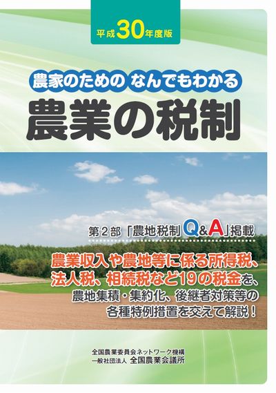 農業収入や農地等に係る所得税、法人税、相続税、贈与税、消費税(※軽減税率制度の概要も掲載)、国民健康保険税など農業関係の19の税金を、農地集積・集約化、後継者対策など経営発展を後押しする特例措置をはじめ最新の税制を網羅して、わかりやすく解説しています。